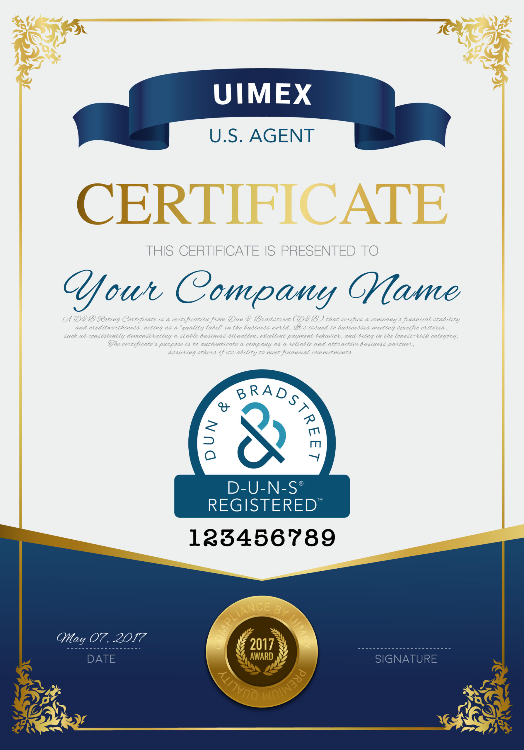 Có trên 20 năm kinh nghiệm chuyên sâu trong việc hỗ trợ các công ty Việt Nam và quốc tế, UIMEX tại Hoa Kỳ sẽ đại diện cho bạn hoàn tất mọi thủ tục, đảm bảo quy trình đăng ký diễn ra nhanh chóng và chính xác. Và, với tư cách U.S. Agent chính thức, UIMEX cung cấp dịch vụ D&B và D-U-N-S Compliance Service toàn diện, hỗ trợ doanh nghiệp Việt Namcó Mã định danh cho doanh nghiệp và đăng ký FDA d6e4 dàng và hoàn tất các thủ tục pháp lý cần thiết. Hãy để chúng tôi đơn giản hóa con đường chinh phục thị trường Mỹ và thế giới cho bạn của bạn.